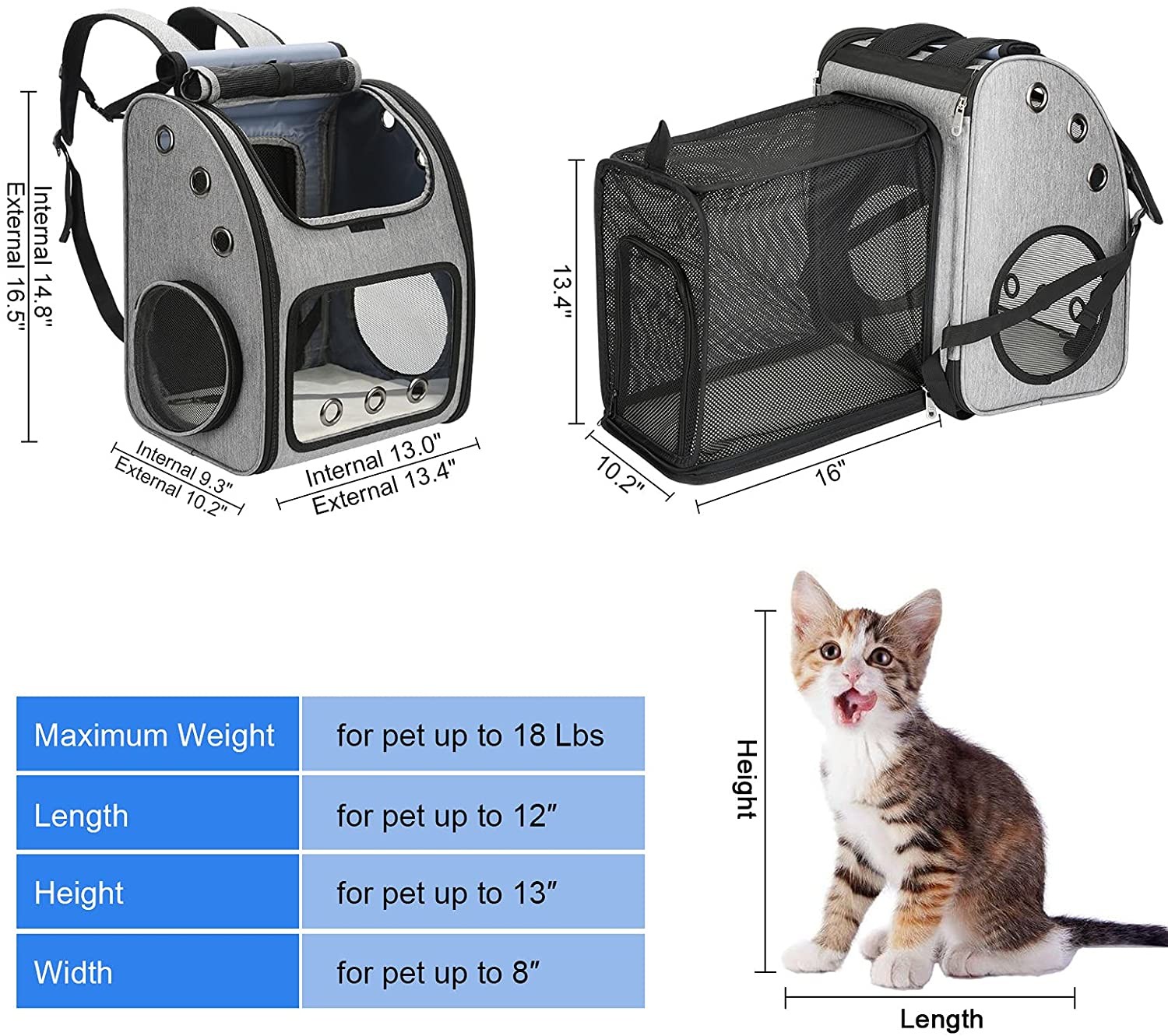 Kediler, Köpekler ve Küçük Hayvanlar için Genişletilebilir Evcil Hayvan Taşıyıcı Sırt Çantası, Seyahat/Yürüyüş için İdeal Taşınabilir Evcil Hayvan Seyahat Taşıyıcı